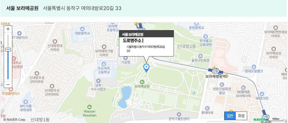 • 위치: 보라매공원 내 지하주차장 (보라매병원 방면 입구)