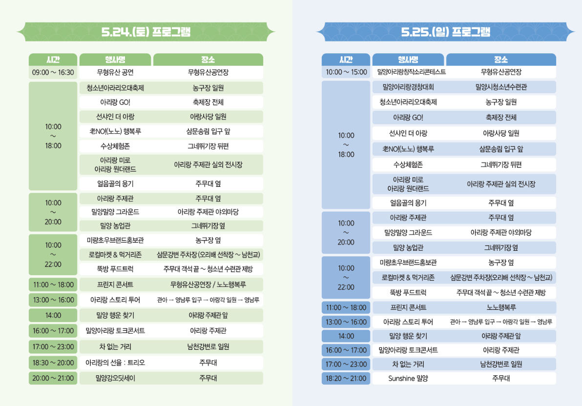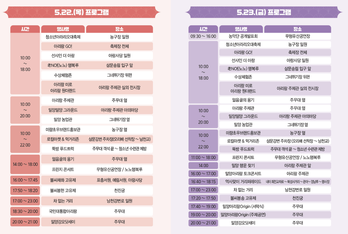 - 장소: 경남 밀양시 삼문동 일원 (주 행사장 및 영남루 인근)