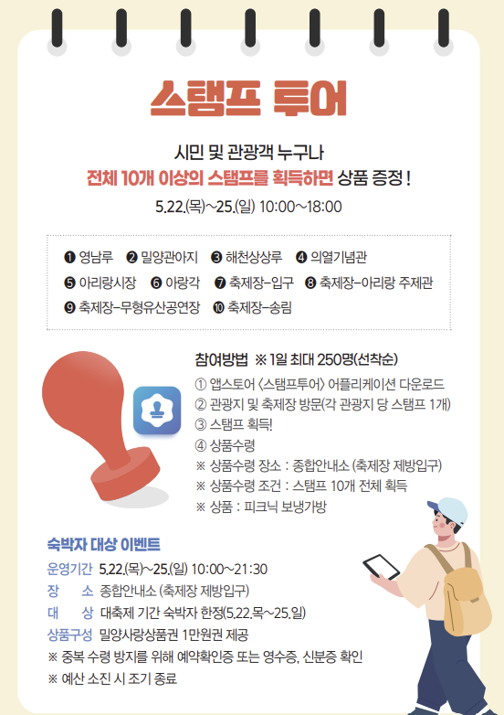 - 참여대상 : 축제 기간(5.22.~25.) 내 밀양에서 숙박한 관광객