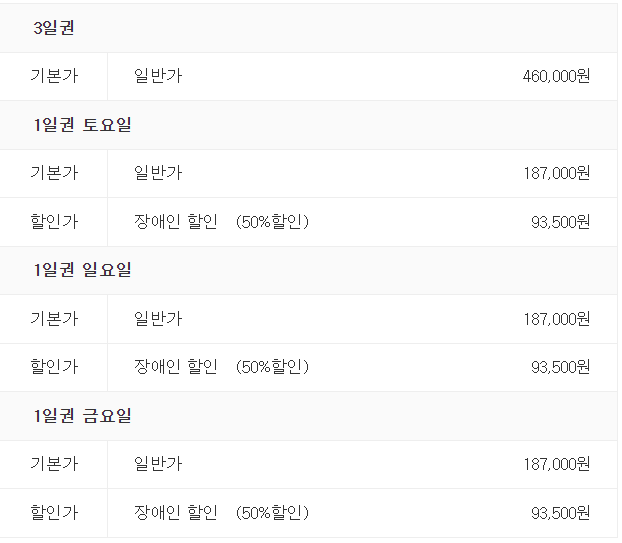 장애인 할인 50% (본인에 한함, 1일권 적용)