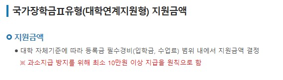 - 소득수준(학자금 지원구간)에 따라 차등 지원