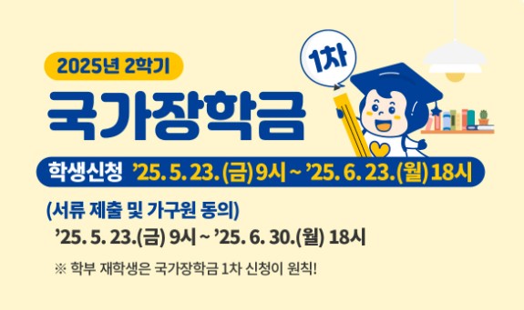 2025년 2학기 국가장학금 신청이 시작되었습니다.