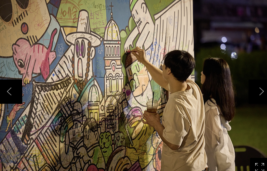 리사이클링 크레파스를 활용한 대형 낙서 공간도 마련되어 있어 아이들과 함께 참여하기 좋습니다.