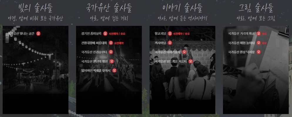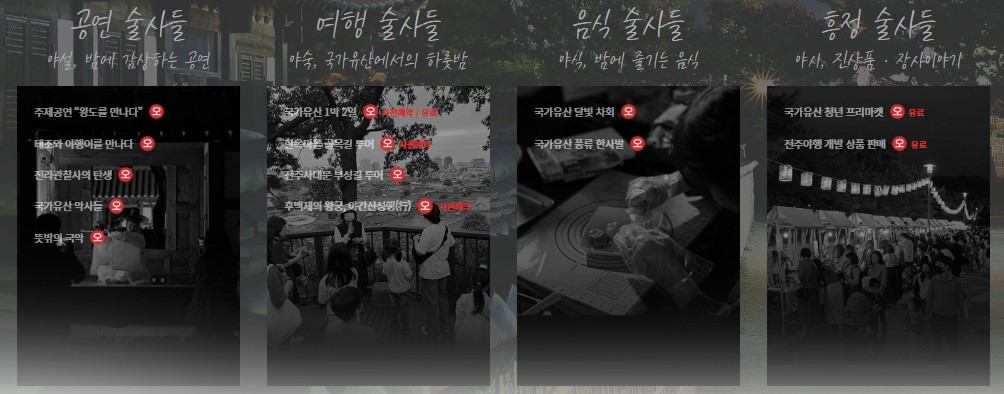 전주국가유산야행, 전주8야, 술사별프로그램, 사전예약프로그램, 야간프로그램
