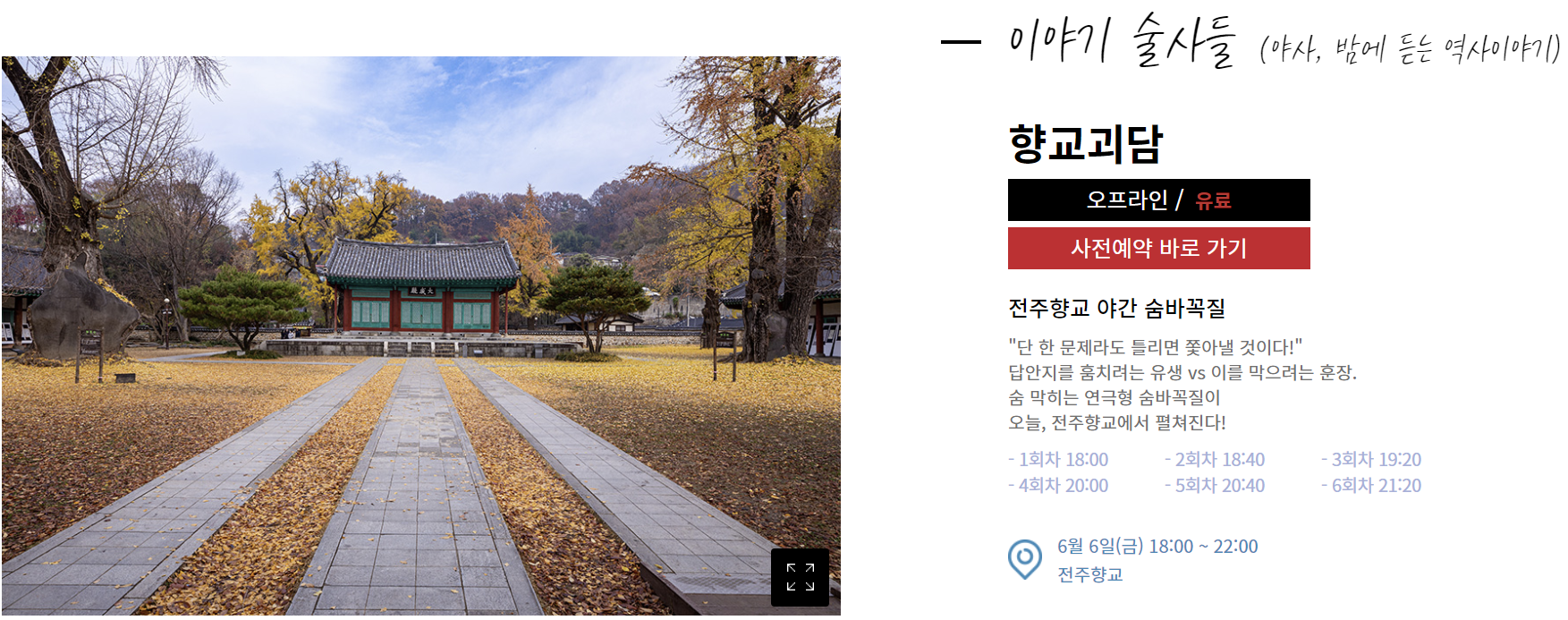 전주에 전해 내려오는 기이한 설화들을 실제로 들을 수 있는 프로그램입니다.