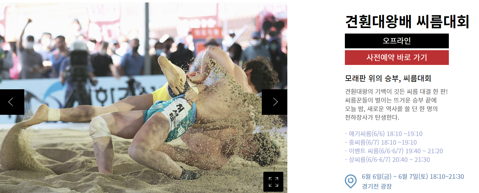 전국단위 씨름대회로, 씨름이라는 전통 스포츠를 체험하고 관람할 수 있는 기회입니다.