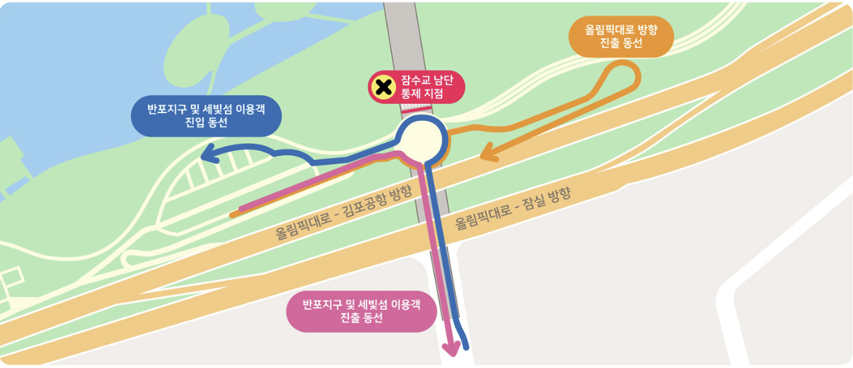- 정상 운영: 잠수교 남단 회전 교차로는 정상 운행