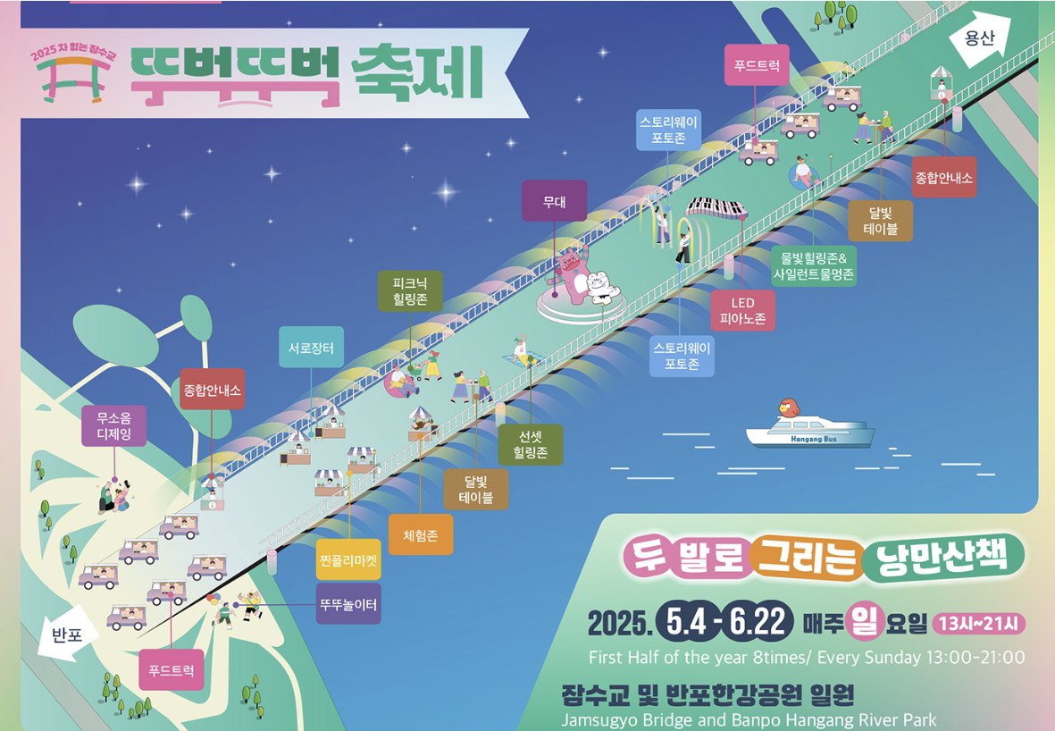 이번 포스팅은 ‘잠수교뚜벅뚜벅축제’의 6월 일정 및 주요 프로그램, 교통 통제 정보까지 상세히 안내해드리겠습니다.