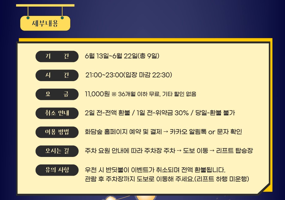 - 티켓 종류: 모바일 입장권으로 QR/바코드를 현장 입구에서 제시하면 바로 입장하실 수 있습니다.